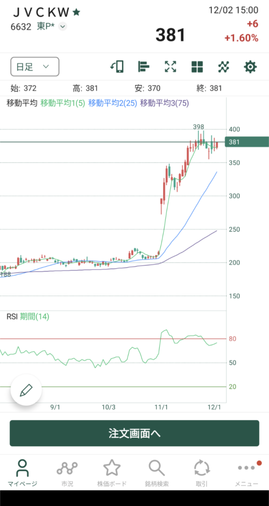 11月8日に上方修正を出して、ちょこっと調整してからまた上を目指しているように見えますね。